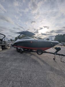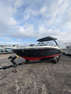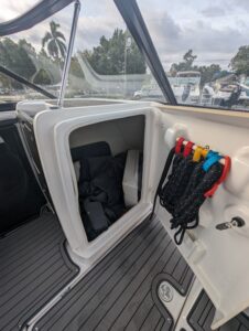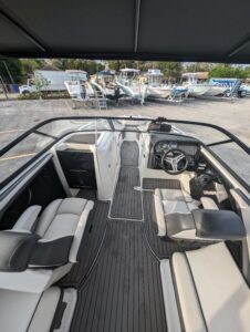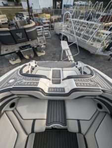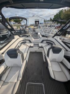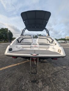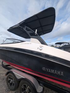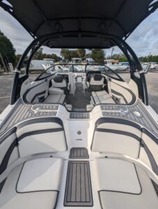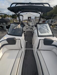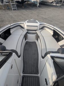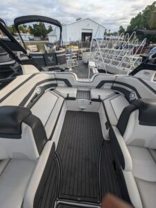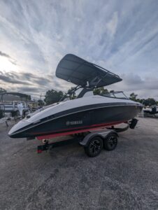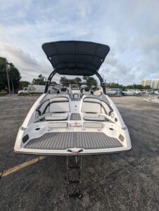 Yamaha's renowned internal propulsion system is not only reliable and fuel-efficient, it also offers the highest level of freedom achievable on the water. The concept is simple: Water is pulled through internally housed propellers and pushed out through marine engines with high thrust points. This technology eliminates the need for an exposed drivetrain, allowing Yamaha boats to plane quicker with less bow rise. The minimal draft makes navigating shallow areas easy. But the benefits don’t end there - internal propulsion eliminates the need for a bulky engine hatch, opening up an expansive swim platform where family and friends can relax close to the water.