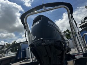 Engine: Powered by a 150 hp Suzuki DF150ATX5 outboard engine, designed for gasoline fuel.