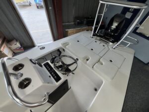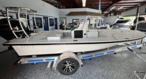 15 Gallon Insulated Live Well Seat Upgrade. Console Grab Bar. Rear Bench Cushion. Front Console Cushion. 3 Bank On Board Charger. Simrad Go9 w/Active Image 3-in-1 Transducer. 24 volt Wiring w/Plug. PowerPux Removable Trolling Motor Bracket. Xplor Poling Platform w/Bucket Holder & 2 Rod Holders. Alcon Marine Folding Push Pole Holders. Atlas Hydraulic Jackplate. Tilt Steering Helm. Plus Standard Features.