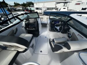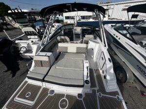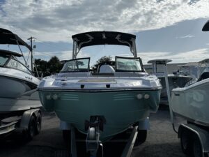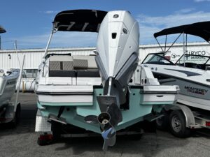 Introducing the stunning 2025 Monterey M-45, a remarkable new deck boat that perfectly blends style and performance. With an overall length of 24 feet, this vessel boasts a sleek fiberglass hull designed for durability and elegance on the water. Powered by a robust 300 hp Mercury 300 Verado outboard engine, the M-45 promises exhilarating speed and smooth handling, making it ideal for both leisurely cruises and thrilling adventures. The stainless steel 3-blade propeller enhances efficiency and responsiveness, ensuring an enjoyable experience for all aboard. The M-45 is equipped with modern features that elevate your boating experience, while its spacious design allows for comfortable gatherings with family and friends. This boat is perfect for those seeking a new adventure on the water, combining cutting-edge engineering with the timeless appeal of Monterey craftsmanship. Embrace the open waters with the Monterey M-45, where every journey becomes a memorable escape.