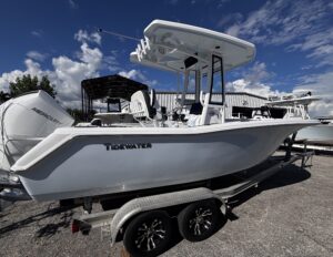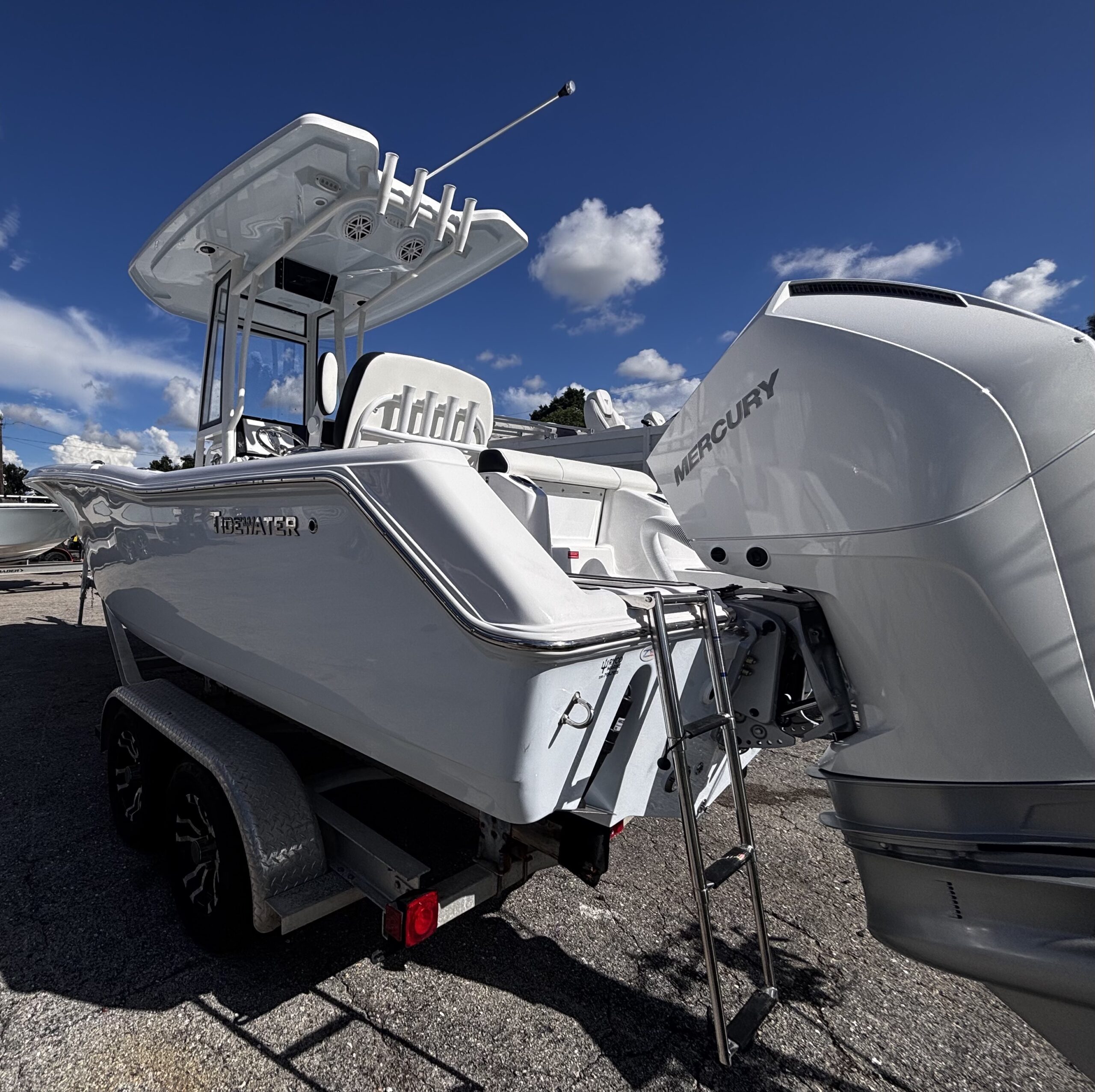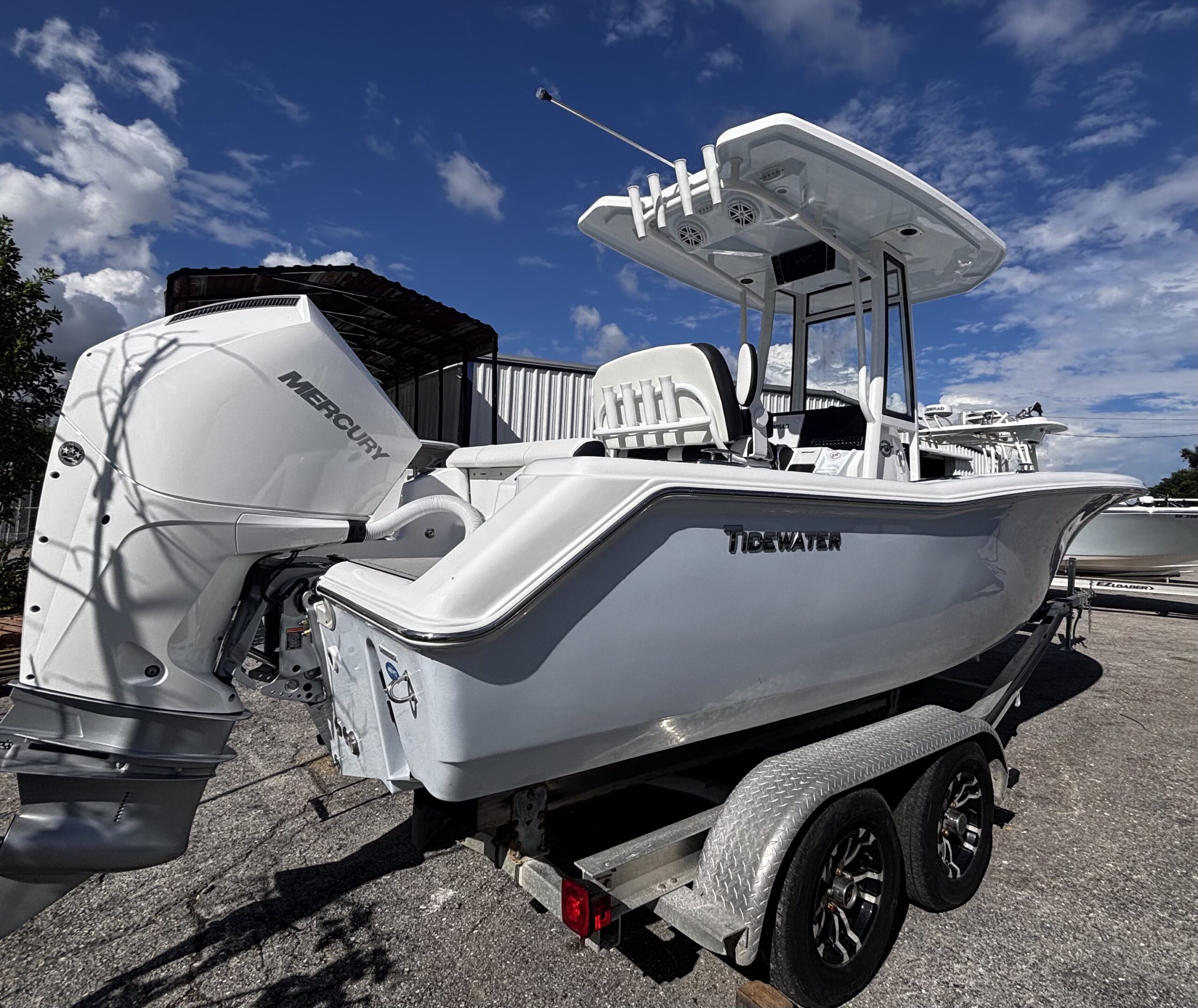Introducing the stunning 2026 Tidewater 220 CC Adventure, a remarkable center console boat designed for both adventure and leisure. With an overall length of 22.17 feet, this vessel boasts a sleek modified vee hull made from durable fiberglass, ensuring a smooth and stable ride on the water. Powered by a robust Mercury 250 XL 4S outboard engine, delivering an impressive 250 horsepower, the 220 CC Adventure promises exhilarating performance and reliability. This new model is perfect for those seeking a blend of power and elegance, making it ideal for fishing trips or family outings. The boat's thoughtful design includes essential features for an enjoyable experience, while its spacious layout provides ample room for relaxation and socializing. Whether you're navigating coastal waters or enjoying a day on the lake, the Tidewater 220 CC Adventure is your gateway to unforgettable maritime adventures.