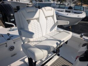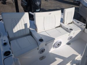 Standard: 10" Hydraulic Jack Plate, Single 12" GPS, Bow Cushions & Back Rest, Transom Kit, JL Speakers with 6 Channel Amp & 10" Sub, 30 & 12 Galon Insulated Livewells, Compass, Raw Water Wash Down, Dual Swim Platforms,