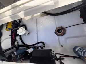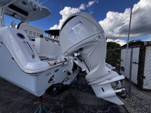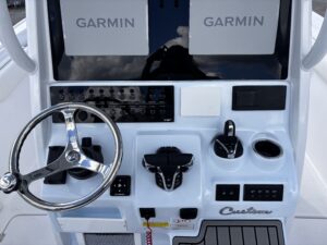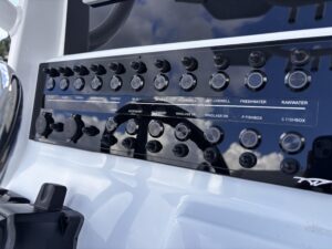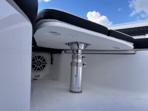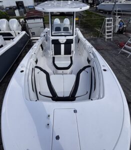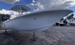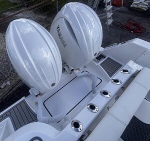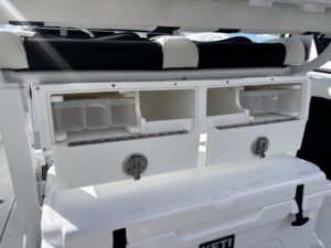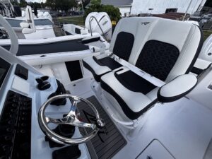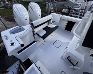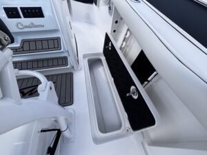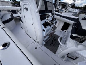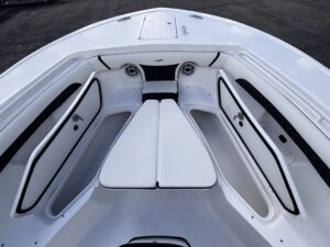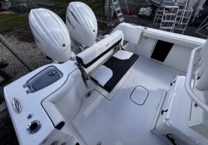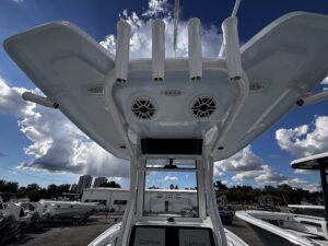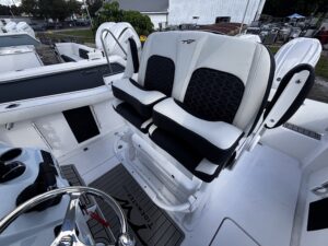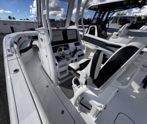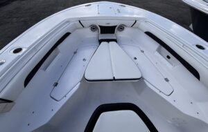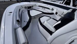 Standard: Bolsters, Fold-Down Rear Seat, Cushions, Fiberglass T-Top with Full Glass Enclosure, JL Audio with (6) Speakers & Amp & 10" Sub, China Head with Pump Out & Overboard Discharge, Compass, Dual Battery Switch, Raw Water Wash Down, Macerator Pump for Floor Fish Boxes, SeaKeeper Ride 450mm System, Dive Door w/Ladder