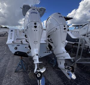 Introducing the Tidewater 256 CC Adventure, a stunning new center console boat for 2026, measuring an impressive 25.67 feet in overall length. Crafted from durable fiberglass, its deep Vee hull design ensures exceptional stability and performance on the water. Powered by twin Yamaha XSA2 outboard engines, each delivering 200 horsepower, this vessel promises exhilarating speed and agility, perfect for both leisurely cruises and adventurous outings. The boat's thoughtful design includes features that enhance your experience, ensuring a smooth ride and easy handling. With its modern aesthetics and robust construction, the Tidewater 256 CC Adventure is ideal for fishing trips, family outings, or simply enjoying a day on the water. Experience the thrill of the open sea with this remarkable boat, designed for those who appreciate quality and performance.