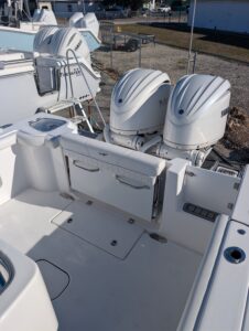 Introducing the Tidewater 272 CC Adventure, a stunning new center console boat crafted for the discerning mariner. With an impressive overall length of 27.17 feet, this vessel boasts a sleek and robust fiberglass hull designed in a deep vee shape, ensuring exceptional stability and performance on the water. Powered by dual Yamaha outboard engines, each delivering 250 horsepower, the 272 CC Adventure promises exhilarating speed and agility. The stainless steel 3-blade propellers enhance efficiency and responsiveness, making every outing a thrilling experience. This boat is perfect for both leisurely cruises and adventurous fishing trips, offering ample space for relaxation and enjoyment. Its modern design and high-quality construction make it a standout choice for those seeking both style and functionality. The Tidewater 272 CC Adventure is ready to elevate your boating experience to new heights.