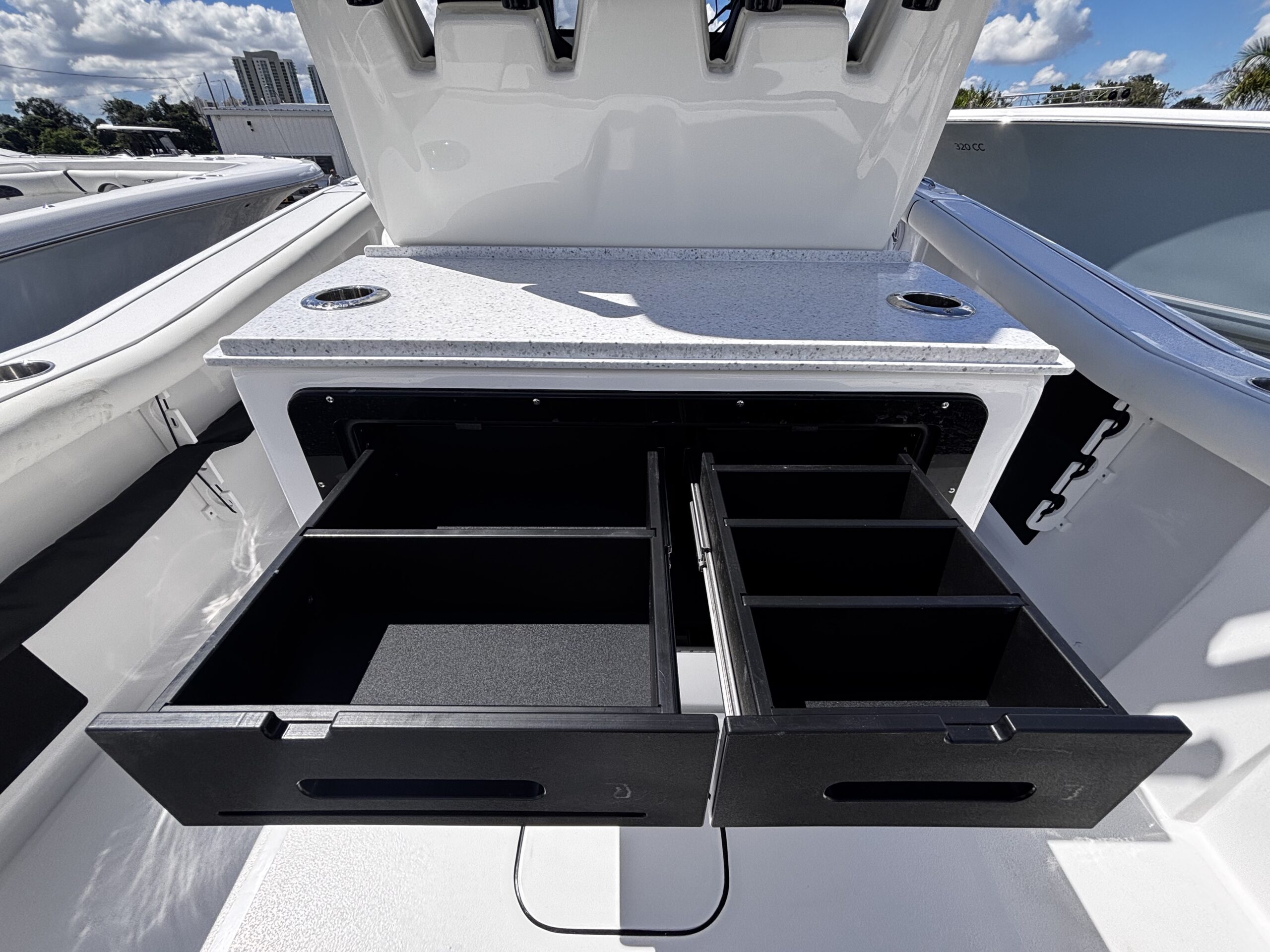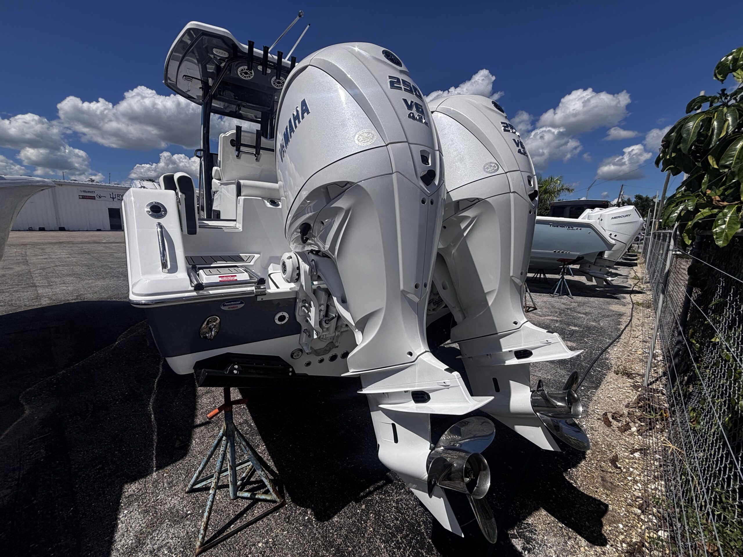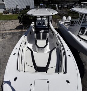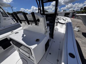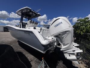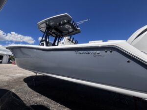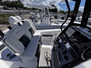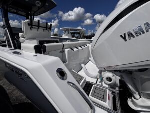 Introducing the stunning 2026 Tidewater 272 LXF, a remarkable center console boat designed for both performance and comfort. With an overall length of 27.17 feet, this vessel boasts a sleek fiberglass hull featuring a Deep Vee shape, ensuring a smooth ride even in choppy waters. Powered by twin Yamaha F 250 XSB2 outboard engines, each delivering an impressive 250 horsepower, the 272 LXF promises exhilarating speed and agility. The advanced joystick control enhances maneuverability, making docking and navigation effortless. This new model is equipped with top-notch features, perfect for a day on the water. The thoughtful design ensures ample space for relaxation and enjoyment, making it ideal for family outings or fishing adventures. With its striking aesthetics and robust engineering, the Tidewater 272 LXF is a perfect blend of style and functionality, ready to elevate your boating experience.